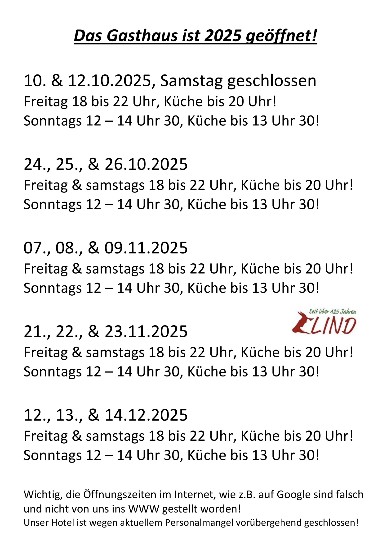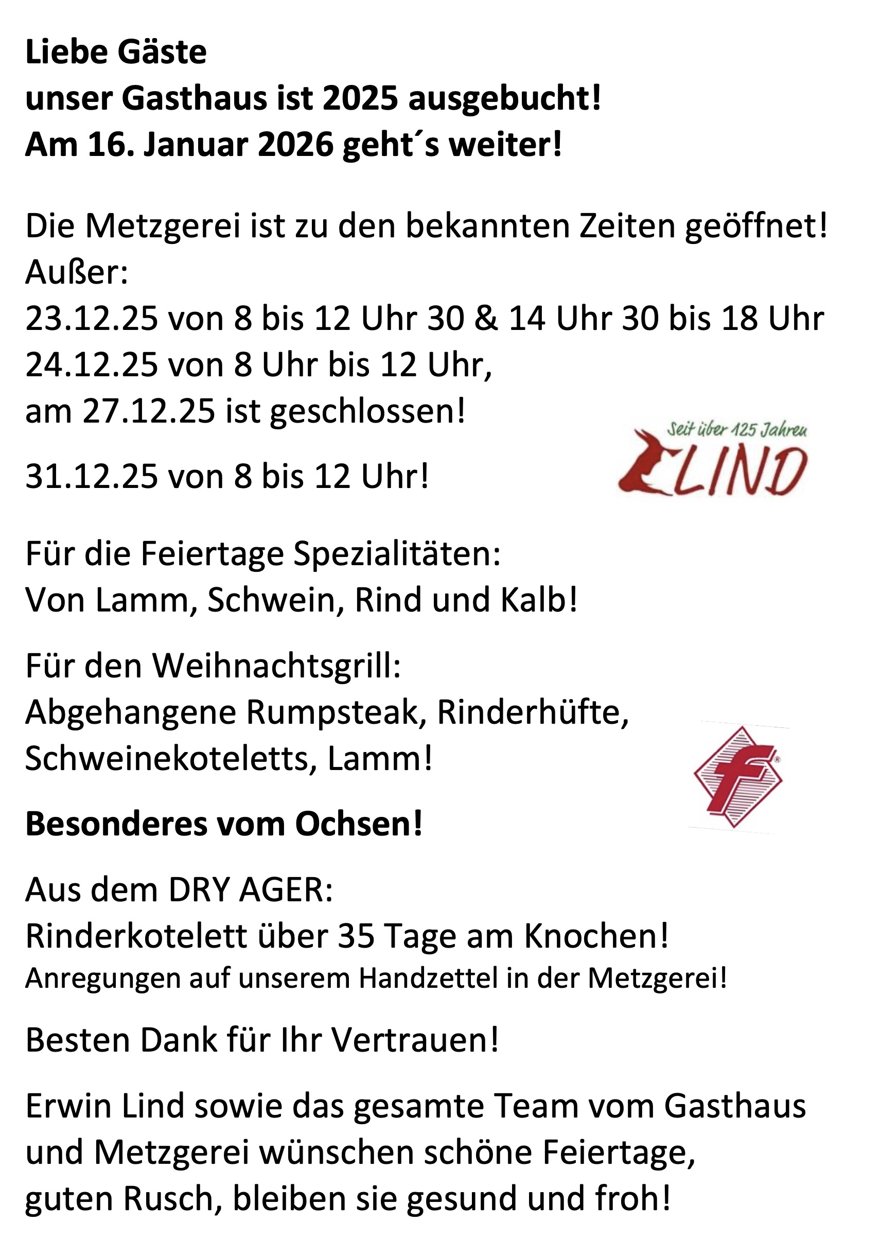 Hier wird sprichwörtlich noch gekocht, wie zu Großmutters Zeiten, denn viele Rezepte stammen aus Omas Linds Kochbuch. Viele Suppen und Soßen werden von ihr noch selbst hergestellt. So schmeckt die Lindsche Küche!