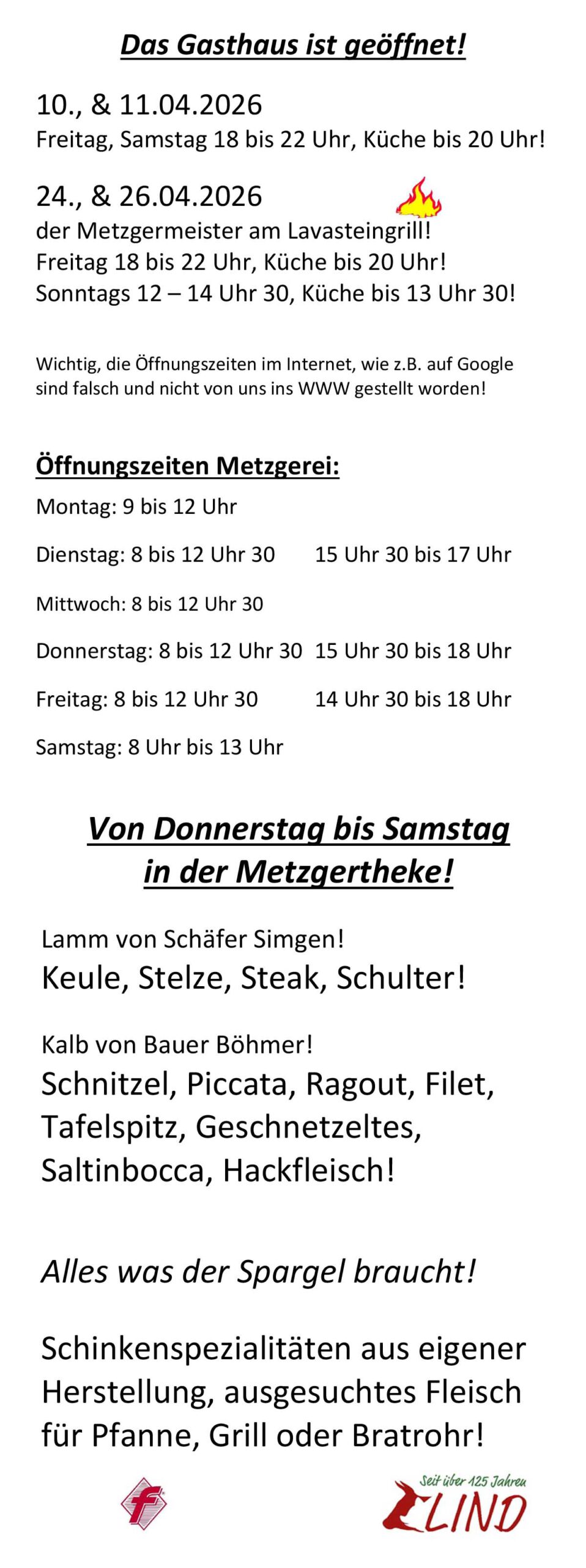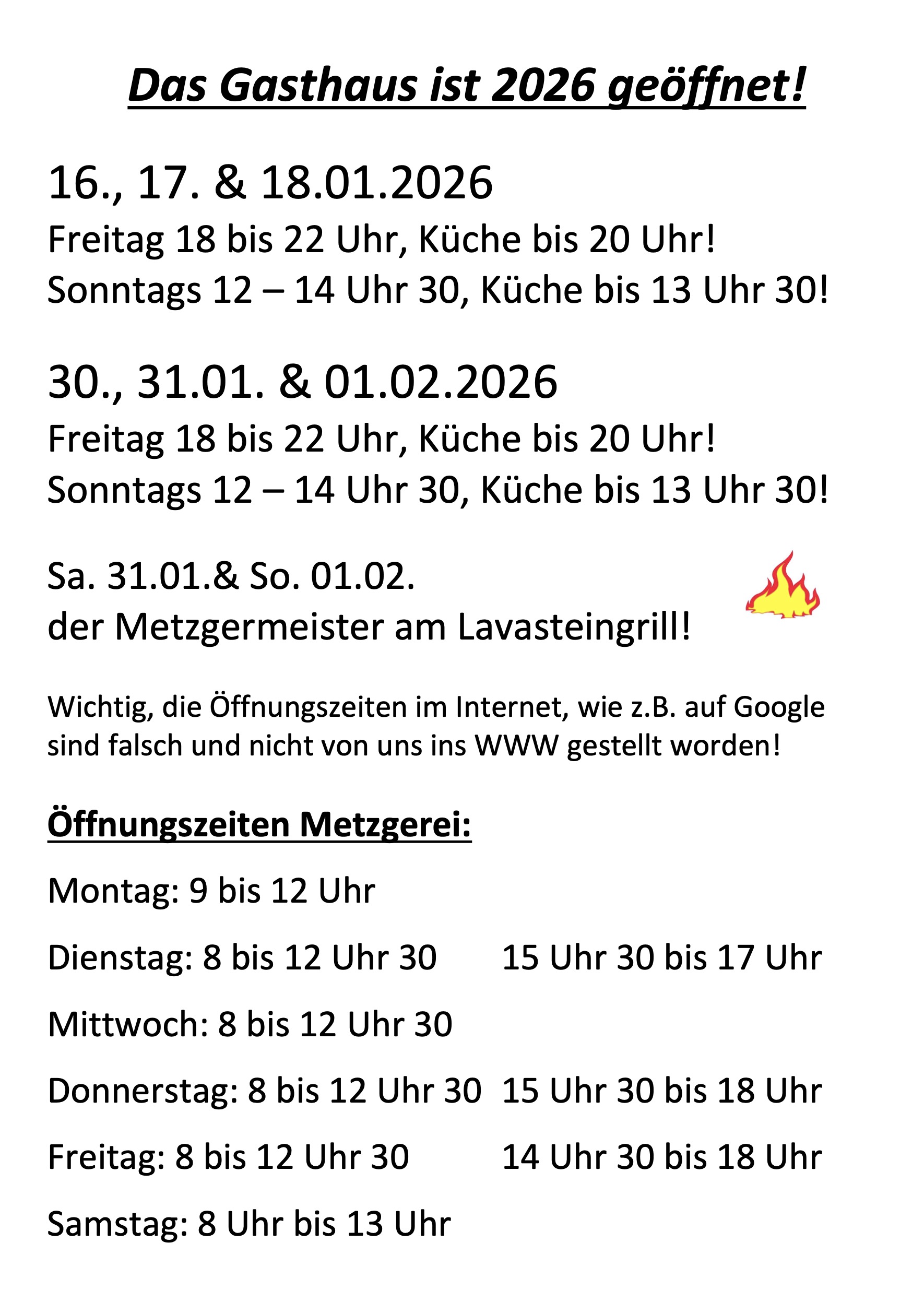 Angebot gültig so lange der Vorrat reicht. Für Druckfehler keine Haftung! Alle Spezialitäten bitte vorbestellen! Reservierungen und Bestellungen sind online nicht möglich, bitte kontaktieren Sie uns telefonisch unter Tel.: 06355 – 14 56.